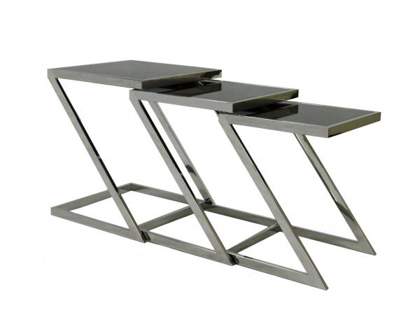 Each time you place your glass of ice tea down on one of these stackable square nesting tables you will be reminded of its striking yet modern elegance that can accompany a wide variety of décor. Made of stainless steel and tempered glass. Big table: 17.75-Inch W x 17.75-Inch D x 21.5-Inch H, Small: 16.25-Inch W x 16.25-Inch D x 19.5-Inch H, X-Small: 14.5-Inch W x 14.5-Inch D x 17.5-Inch H.